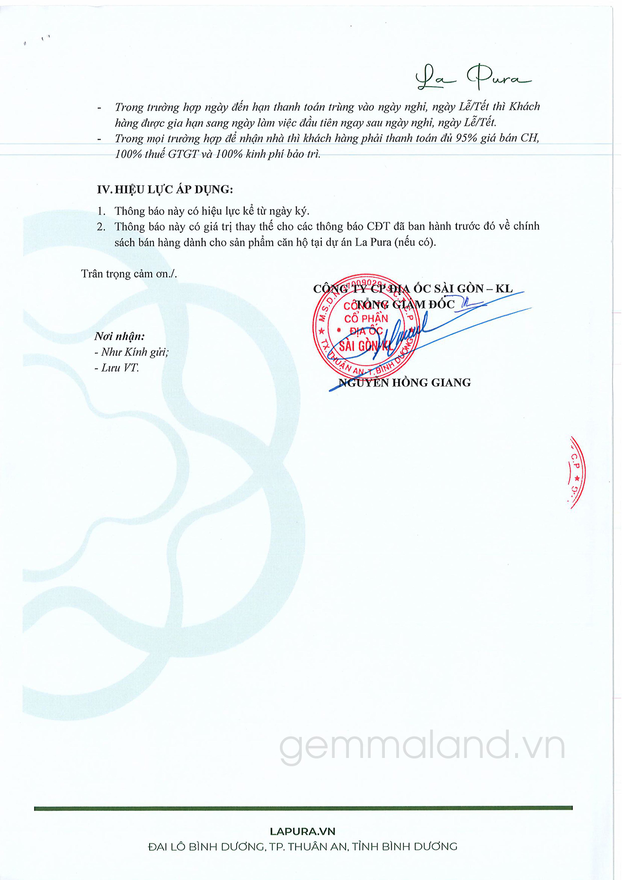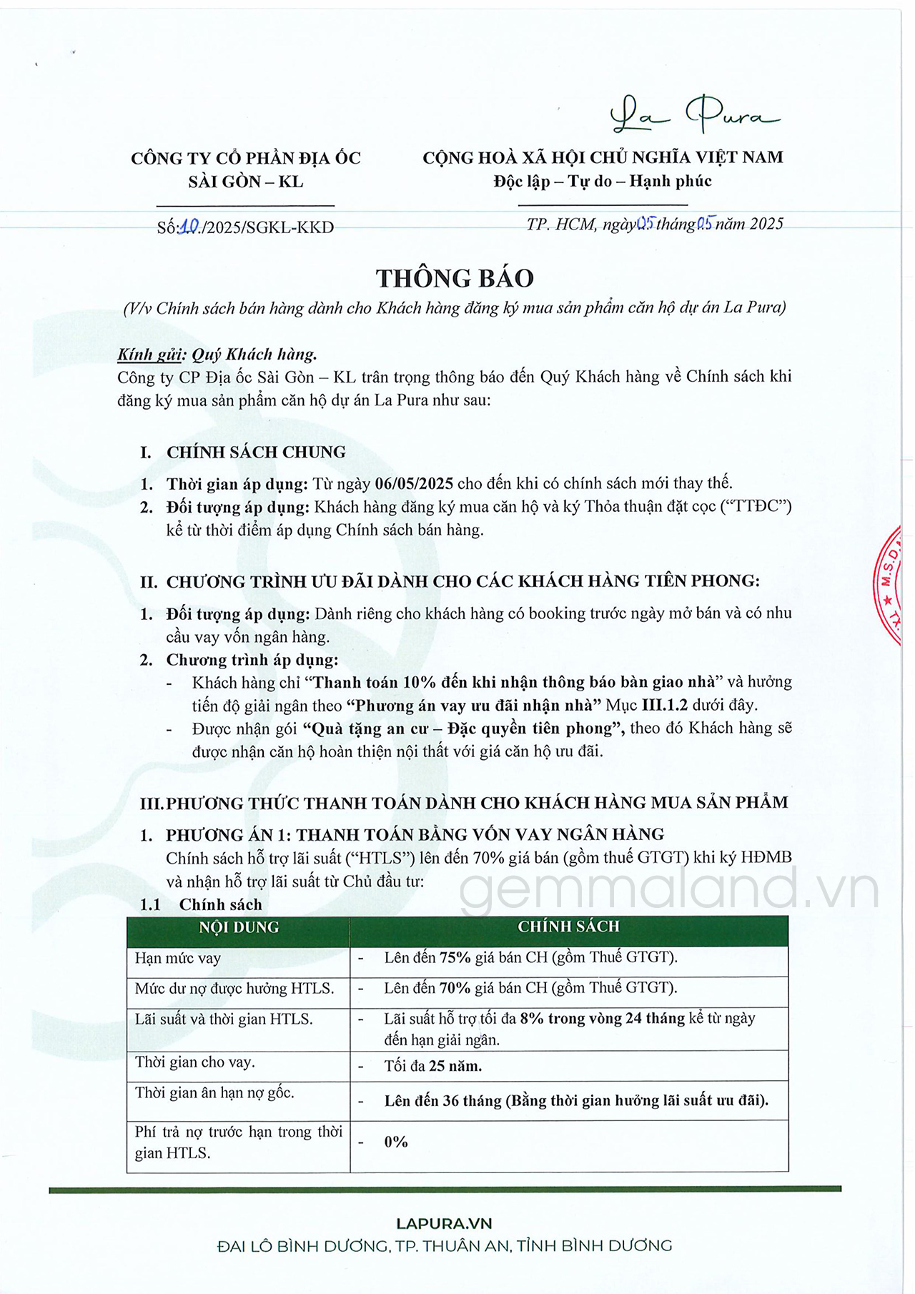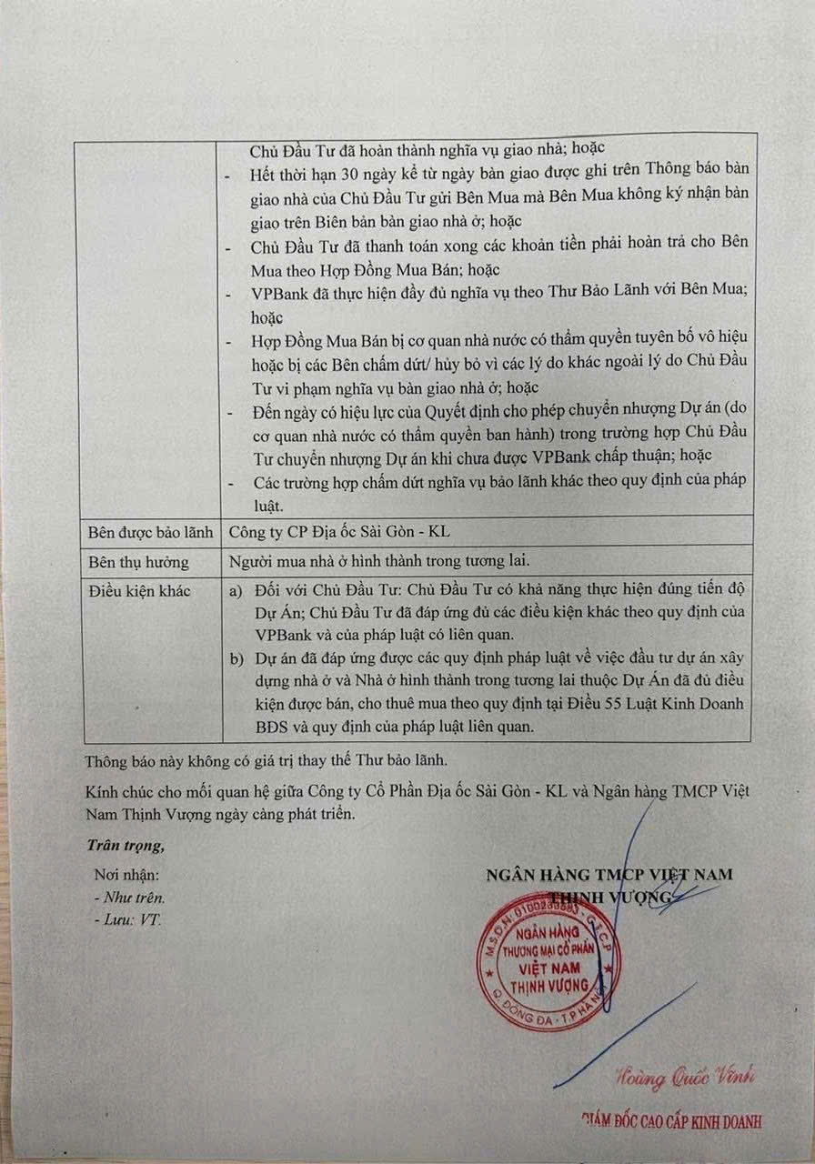 VP Bank ra thông báo đối với dự án La Pura Thuận An Bình Dương:
