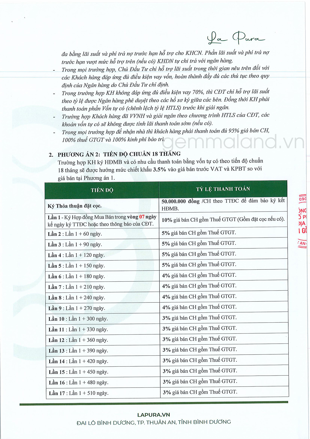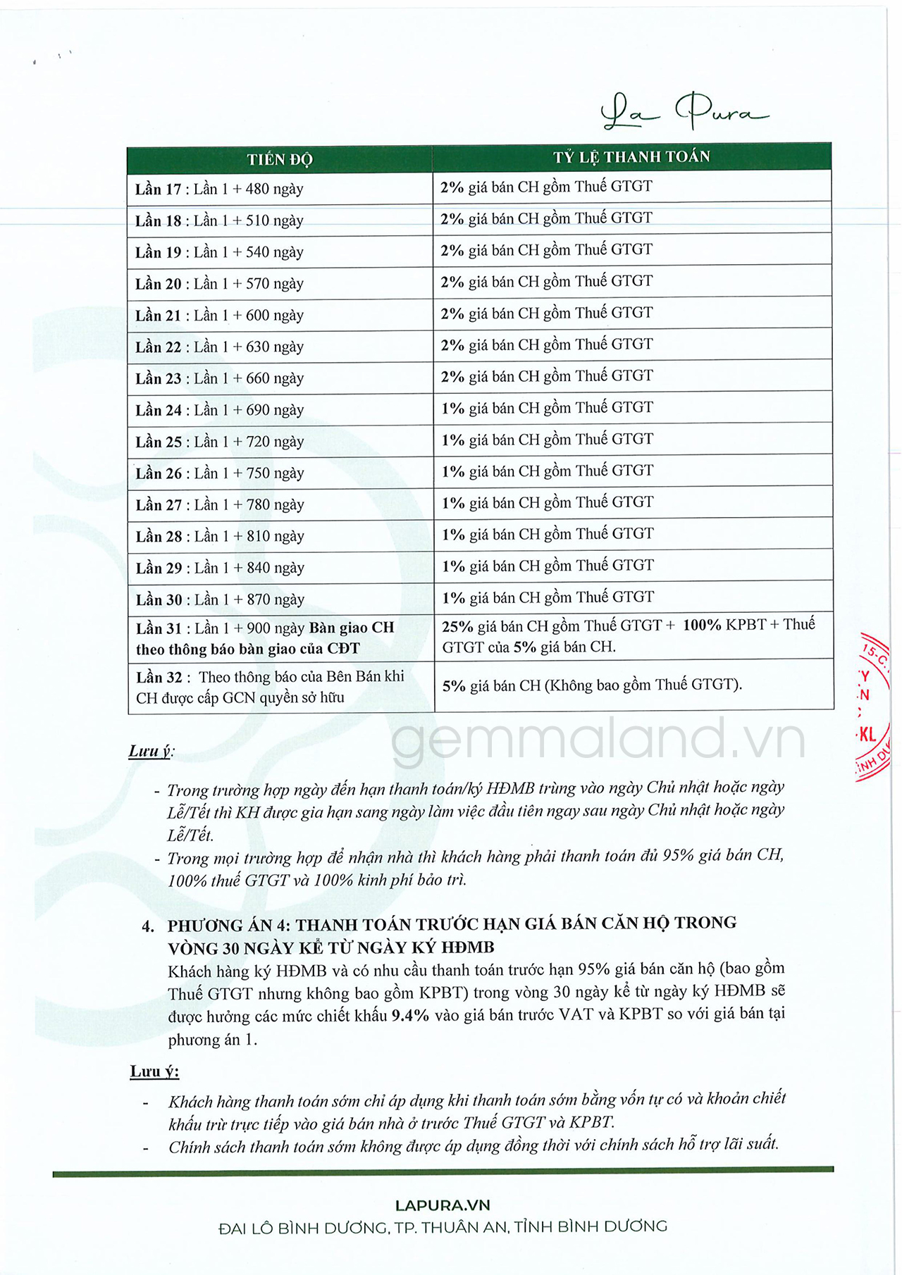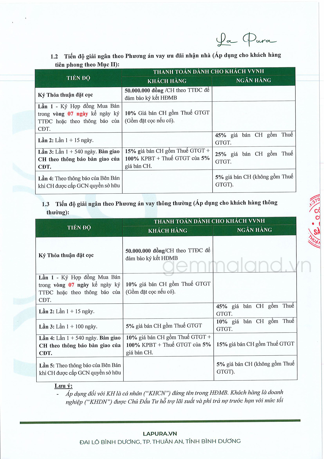 – Đặt cọc: 50tr => 10% ký hdmb => ngân hàng giải ngân 45% => ngày bàn giao KH TT 15% + ngân hàng giải ngân 25%=> 5% ra sổ